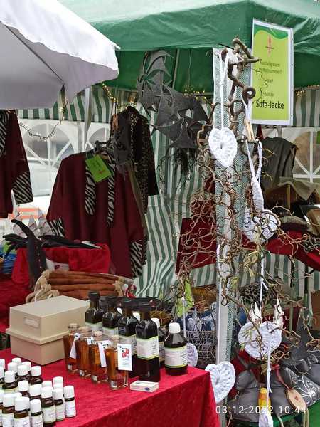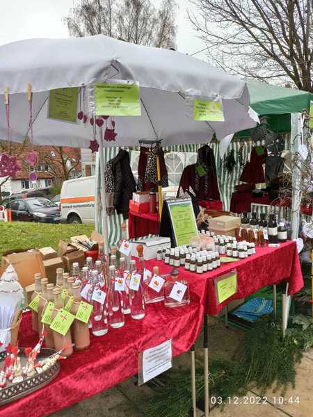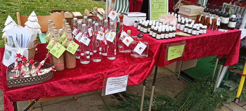 Außerdem gibt's verschiedene ätherische Öle und weihnachtliche Düfte sowie Obstbrände vom Obst Sondelfinger Wiesen.